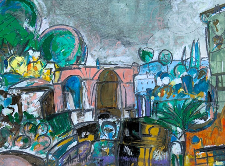 Œuvres sur base de gouache avec d'autres médiums: pastel gras, mine de plomb...